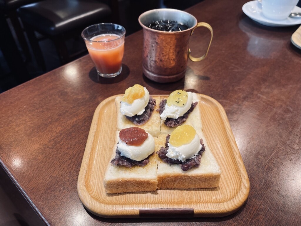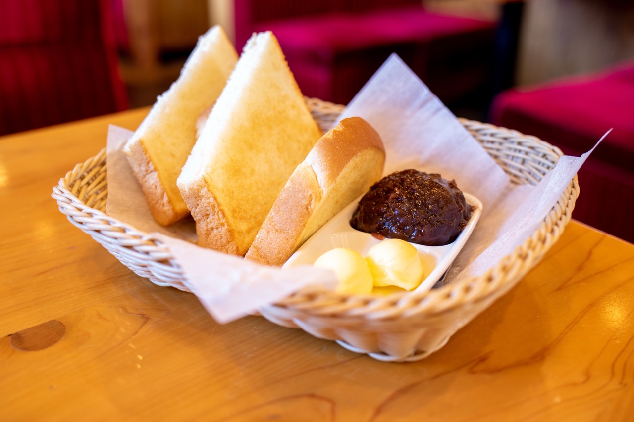 輕食方面,厚片吐司幾乎是喫茶店的標配,在名古屋更演化出一種代表性吃法「小倉吐司(小倉トースト)」,也就是在厚片吐司上抹上奶油,再鋪上一層紅豆泥,甜鹹交織,是名古屋早餐文化的象徵之一。