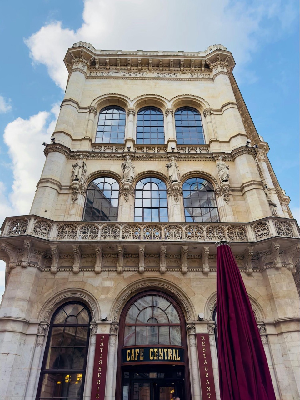 維也納最具代表性的咖啡館,是位於市中心的「中央咖啡館(Café Central)」。這間開業於 1876 年的咖啡館,有著挑高的拱形天花板、大理石廊柱與古典的歐式裝潢,光是走進去,就有種穿越時光的錯覺。
