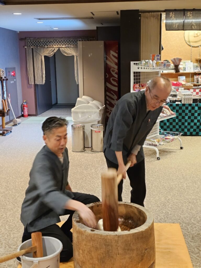 旅館也設計了讓外國旅客能夠體驗日本傳統文化的課程。例如搗麻糬,讓旅客可以參加平常只有在祭典才有的活動,品嘗手作麻糬的滋味。