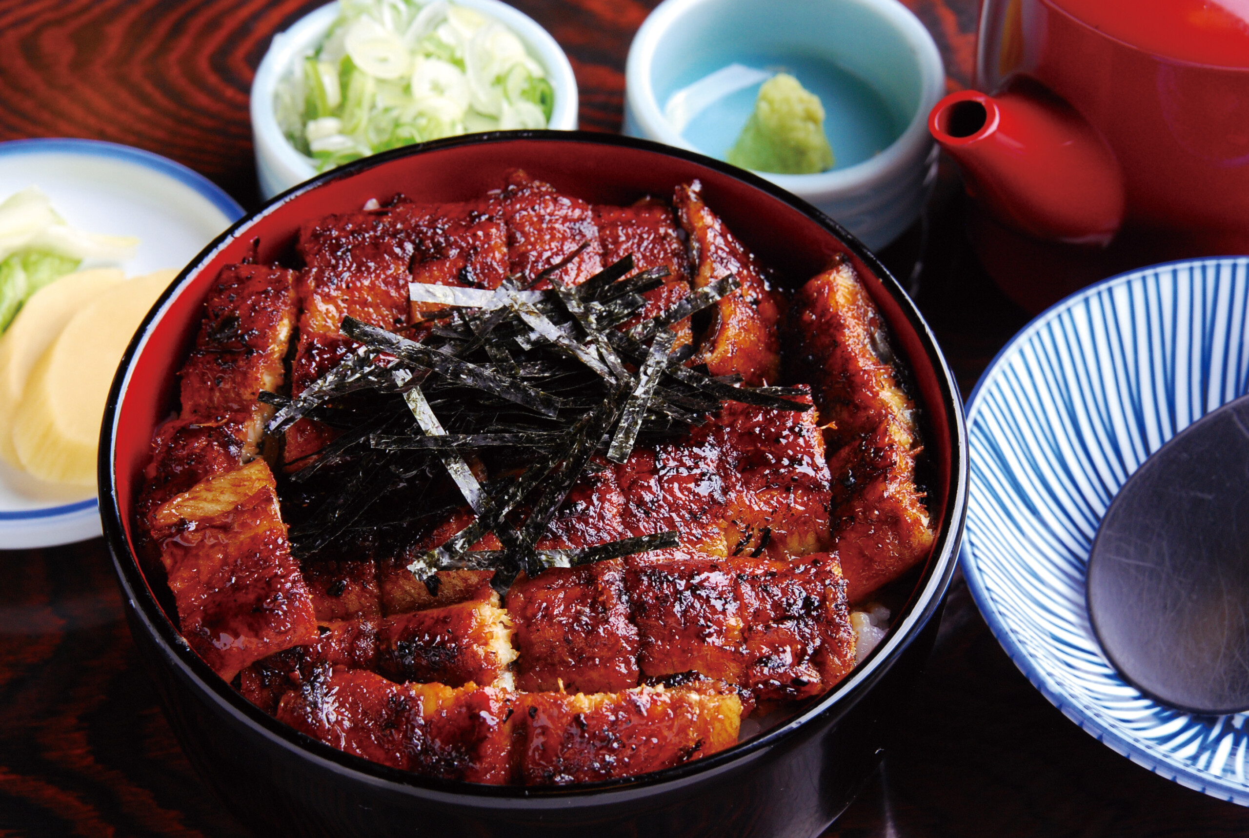 宮鍵的蒲燒鰻魚飯選用脂肪含量較低的小型鰻魚,透過反覆刷上味醂與醬汁後,再用特殊手法慢火燒烤,入口香氣四溢、不膩不柴,別具一格。