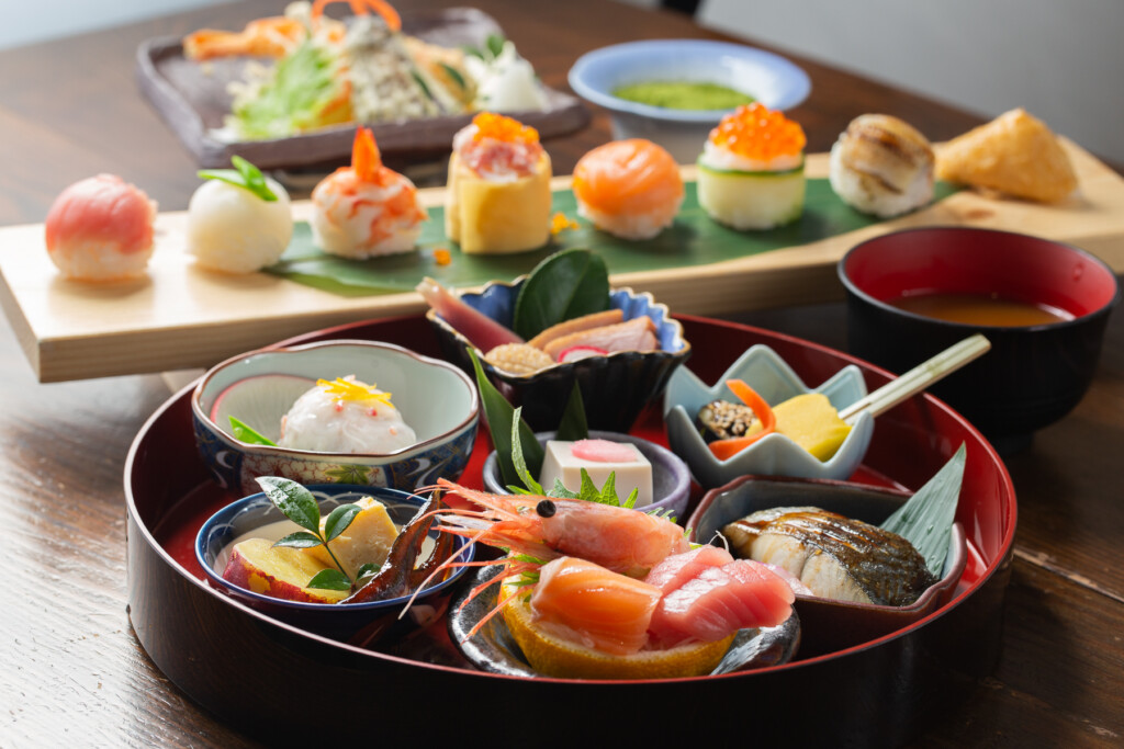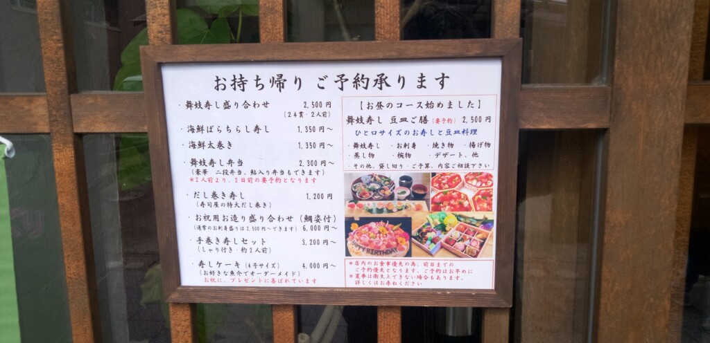 這裡從前是城下町舞妓、藝子表演場所,店內因此提供名為「舞妓壽司」的城下町壽司名產。此外,針對無法一口咬下太大食量的客人,還推出了一口就能吃完的「一口壽司」也廣受歡迎。