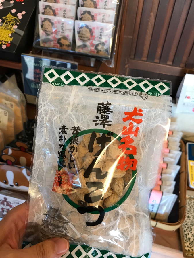 有140年歷史的老店藤澤製菓,販賣犬山自古流傳的糖果「げんこつ飴」(genkotsu ame)。聽說每一家的配方都有些不一樣,但140年來藤澤製菓堅持只使用天然的黃豆粉,黑糖,芝麻等材料,沒有化學原料,也不做大量生產來維持品質。