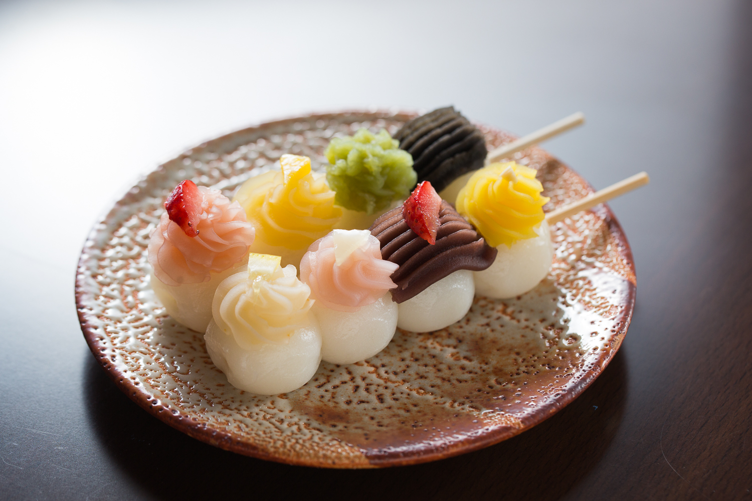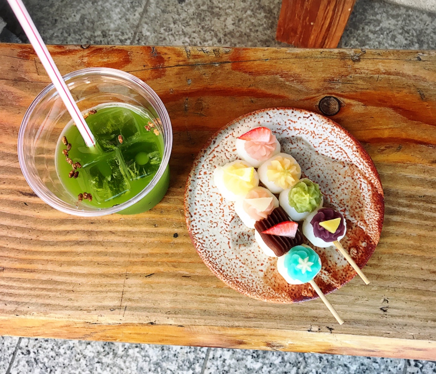 在純白的小丸子上放了各種口味的甜餡,這根本就是時尚的西式糕點。配上帶點苦澀的冰綠茶真是讓人升天了!這麼嶄新可愛的點心,難怪最近常常可以在SNS上看到他們的蹤影。店家也會依季節或節日推出限定口味,不管何時來拜訪都可以享受到不一樣的味道。