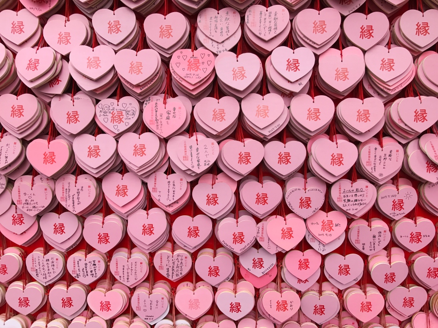 這裡有深受女性喜愛的超可愛粉紅心型繪馬喔!不管你是已婚未婚,有對象或沒對象,光是寫下心願就覺得心情好好一定會心想事成。