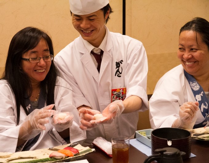 可在和風建築中,一邊享受美味壽司、日本料理(懷石料理),一邊眺望日本庭園。另外提供和服體驗,還可以在專業壽司職人的指導下,用合理的價錢,參加製作壽司的體驗行程。(需要事前電話預約)